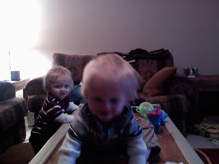 Just lounging in our boppies drinking some juice. It may look like we're watching TV, but no, we're just staring at Shadow looking out the window.